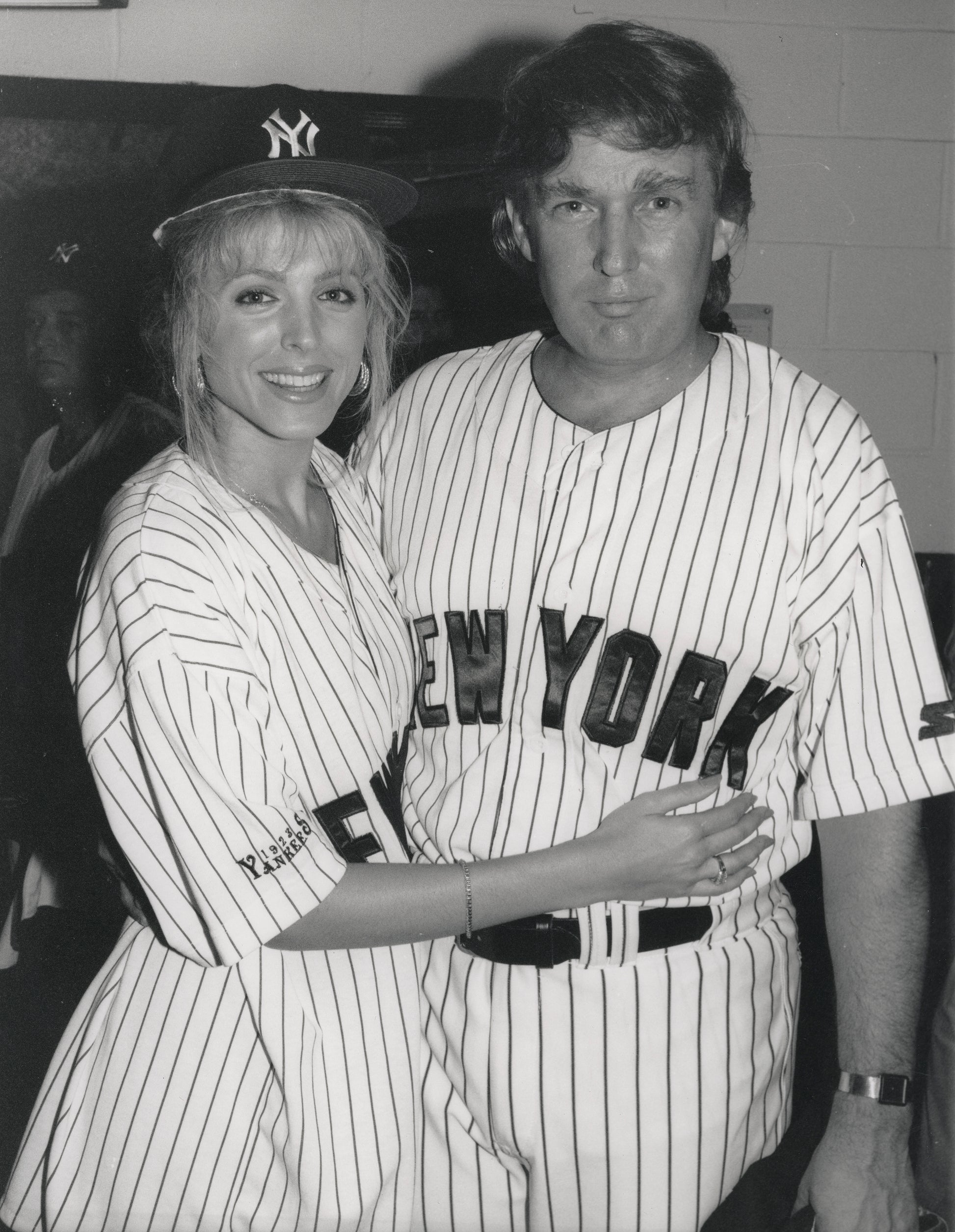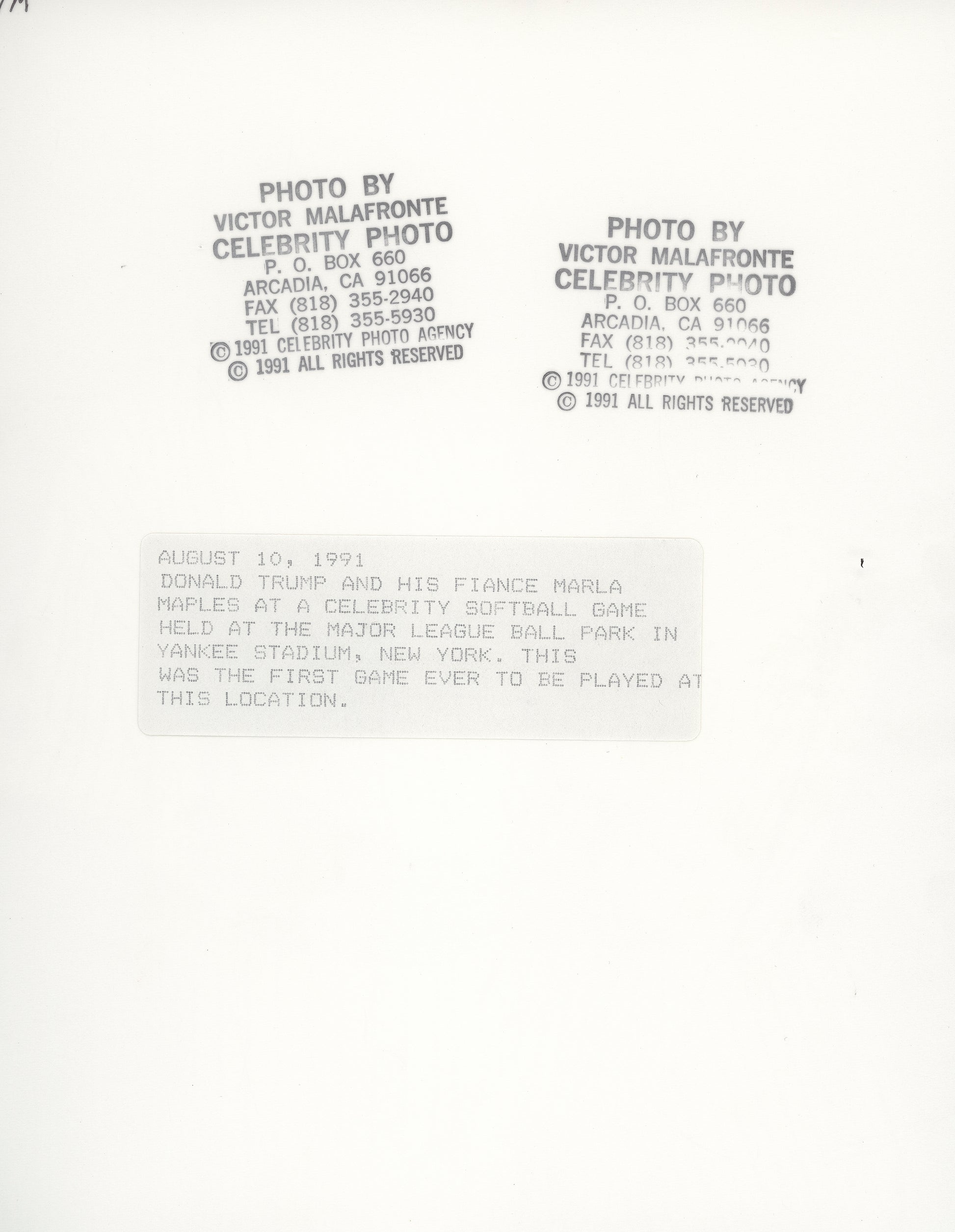 Trump and Fiancée Marla Maples Shine at Historic Celebrity Softball Game at Yankee Stadium
