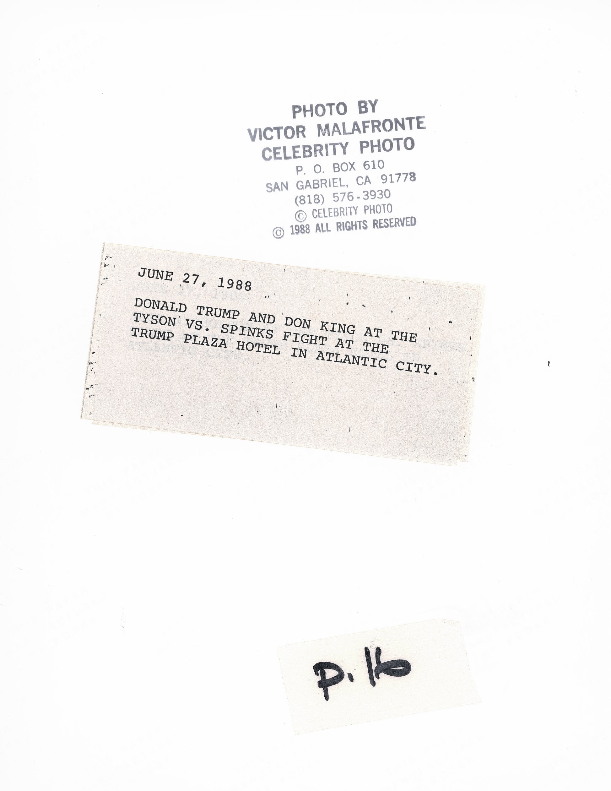 DONALD TRUMP AND DON KING AT THE TYSON VS. SPINKS FIGHT AT THE TRUMP PLAZA HOTEL IN ATLANTIC CITY•