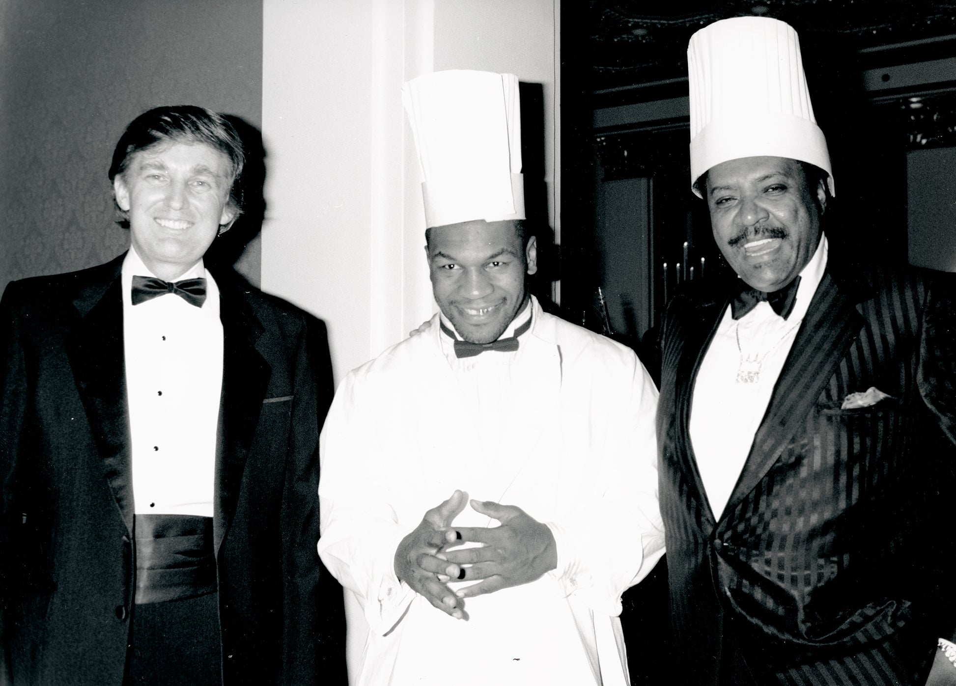 MIKE TYSON IN NEW YORK AT THE PLAZA HOTEL FOR THE MARCH OF DIMES CHARITY CELEBRITY CHEF NIGHT POSED WITH DONALD TRUMP AND DON KING THE BOXING PROMOTOR