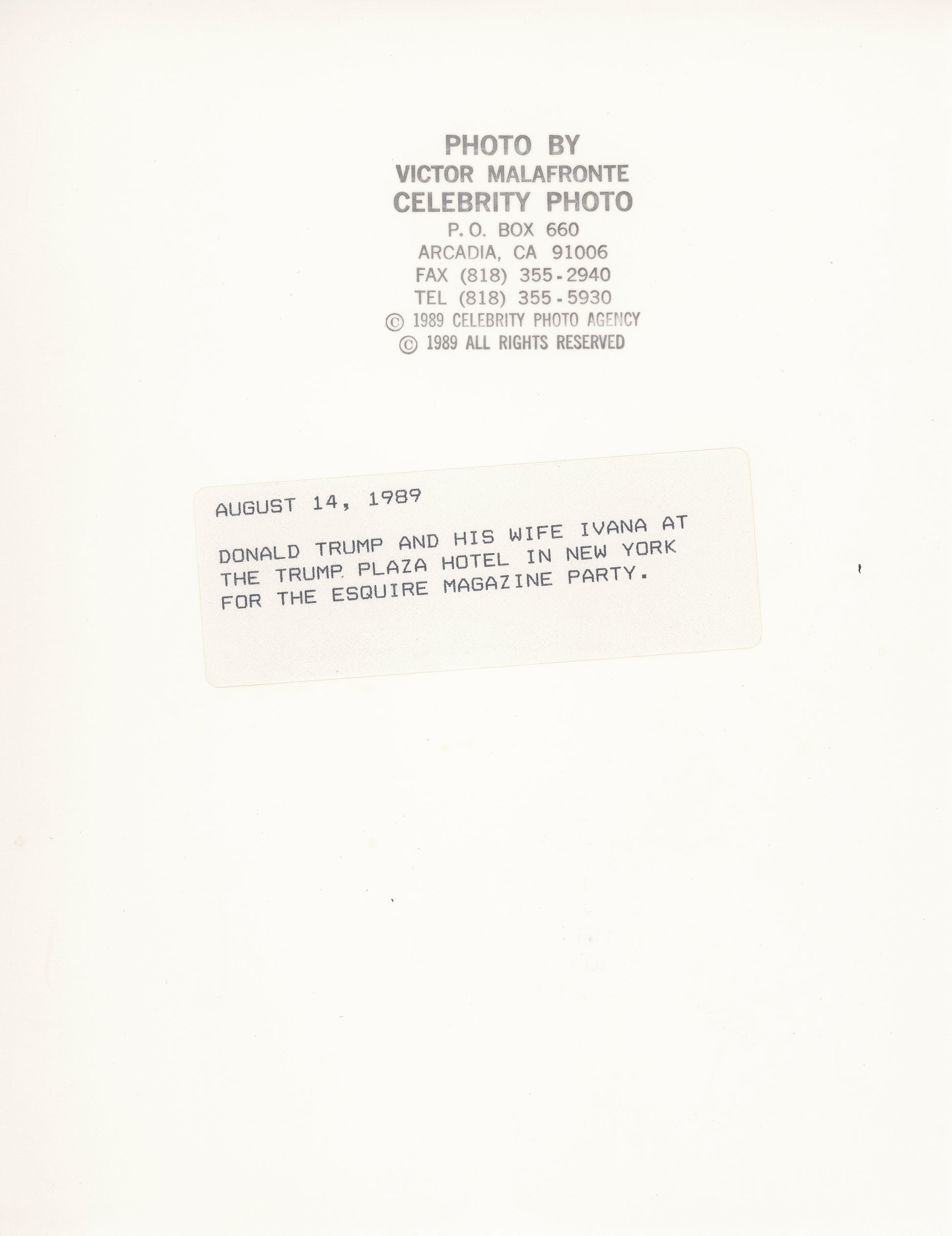 Trump and Ivana Grace Esquire Magazine Party at Trump Plaza Hotel, 1989