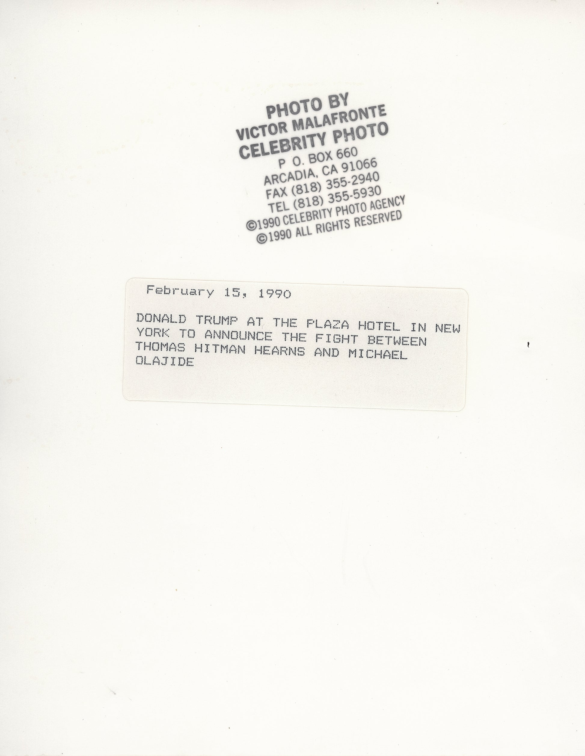 DONALD TRUMP AT THE PLAZA HOTEL IN NEW YORK TO ANNOUNCE THE FIGHT BETWEEN THOMAS HITMAN HEARNS AND MICHAEL OLAJIDE