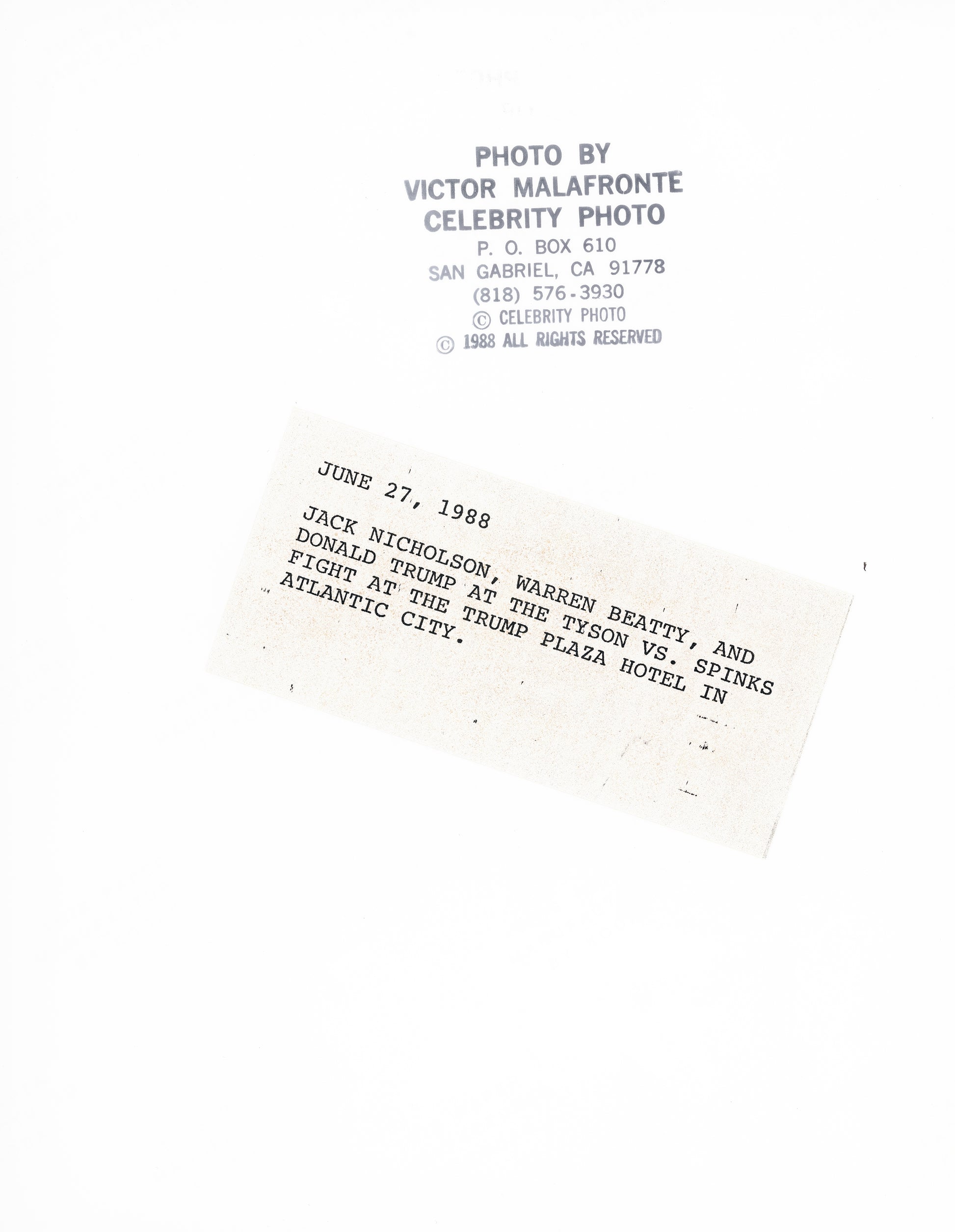 JACK NICHOLSON, WARREN BEATTY AND DONALD TRUMP AT THE TYSON VS SPINKS FIGHT AT THE TRUMP PLAZA HOTEL IN ATLANTIC